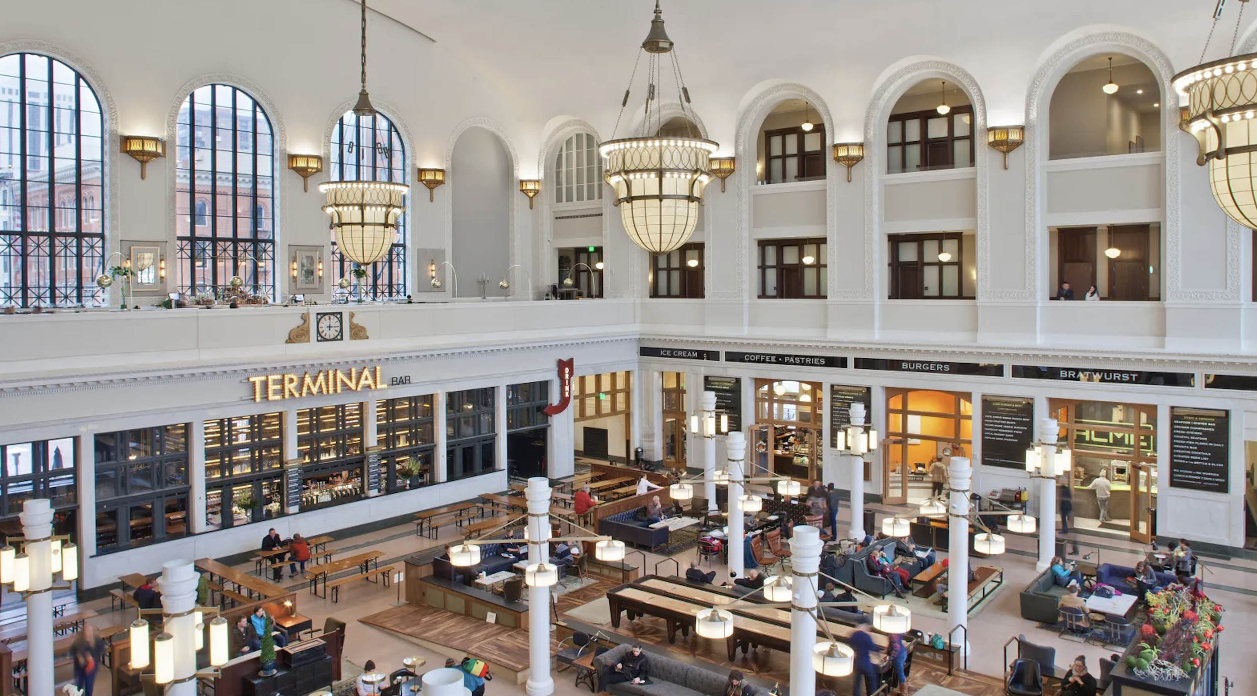 Denver Union Station functions as a continuously active public environment rather than a single-purpose transit facility. The historic Great Hall serves as a central gathering space throughout the day, supporting informal meetings, dining, and waiting alongside programmed and incidental use. Transit operations bring consistent daily foot traffic, while dining, retail, and hospitality extend activity beyond peak commute hours.